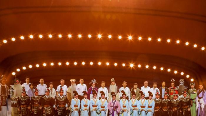 鲁北技师学院内设置了吕剧学院,吕剧的传承与发扬有了新的宽广的渠道,这是在揭牌仪式上《程婴救孤》剧目演出后,学校与演员兼教师的合影。拍照时选择了影剧院灯光进行二次曝光,突出星光灿烂的效果。