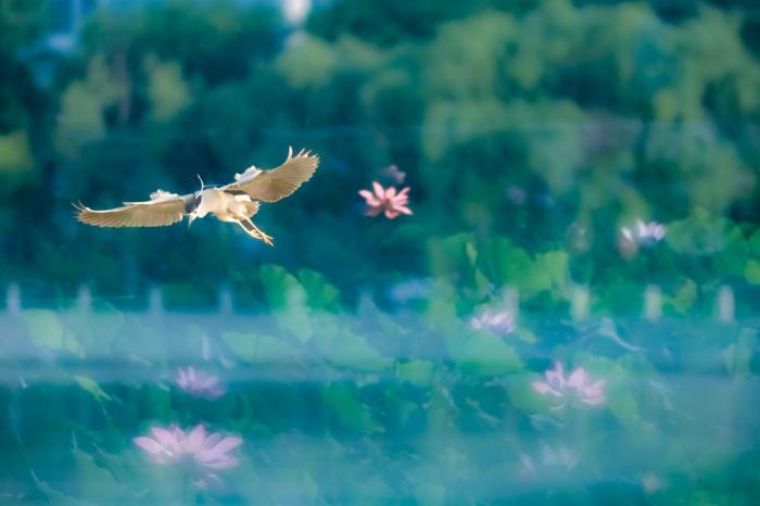 《鹭影掠空入画屏》拍摄于黄河二路荷花池。