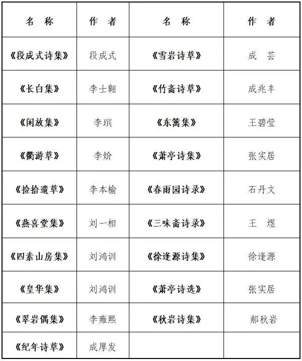 作品必须是邹平籍文人原创,非抄录、辑存他人之作,涵盖诗词曲赋集,收录在相关文集中的诗词曲赋,或以书画落款、碑刻、家谱等其他方式留下的诗词曲赋作品。